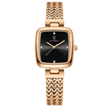 An exquisite 28mm rectangular women's watch combining delicate feminine design with refined stainless steel craftsmanship.